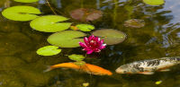 My husband and I are renting a house that came with a fish pond, 2 koi, 4 goldfish, and 2 waterfalls. I have thoroughly enjoyed the water feature these past three months and dropping pellets every day is no trouble. I’ve even begun to tell the fish apart. The big orange koi always gulps two or more pellets at a time. The white koi, true to its name, always seems a little bashful. Of the 4 goldfish, the smallest one has been interesting to watch. It pops out of the water like his brothers and sisters, but never seems to catch the pellet on the first try.